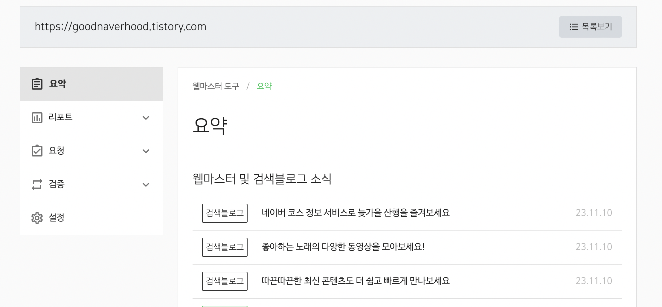 내 티스토리 블로그를 등록하시고요, 내 사이트 소유확인을 해주세요.